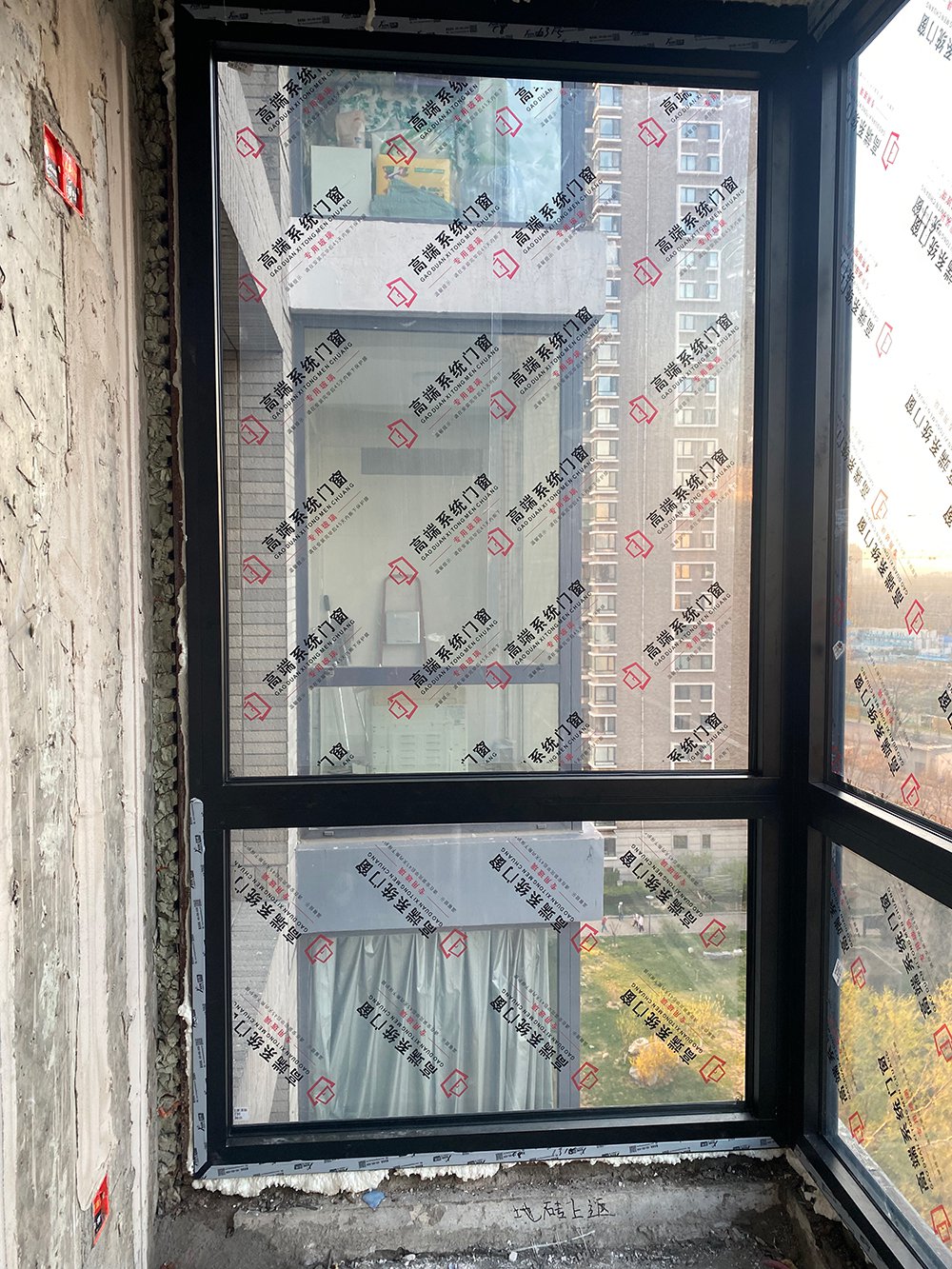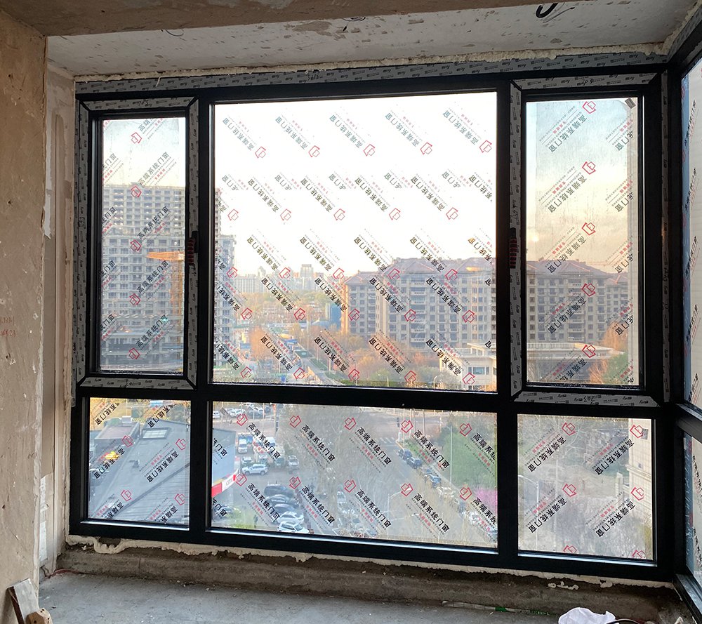 日祥门窗85系列框扇平齐系统窗,安装地址是北京朝阳区观湖国际6号楼。窗户的颜色室外为板岩灰色、光面,室内的颜色是墨黑色、麻面、亚光。五金使用德国诺托、隐形合页、大把手、黑色。金刚网高透网纱窗。方形压线,双层中空钢化玻璃,配暖边条。断桥铝窗定制安装总价格67000元。我们是日祥门窗北京工厂,我们的工厂在北京市房山区窦店大窦路,日祥门窗专卖店位于朝阳区北四环居然之家智能家居体验中心六楼,欢迎大家到我们安装好的项目进行考察。